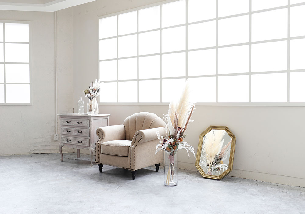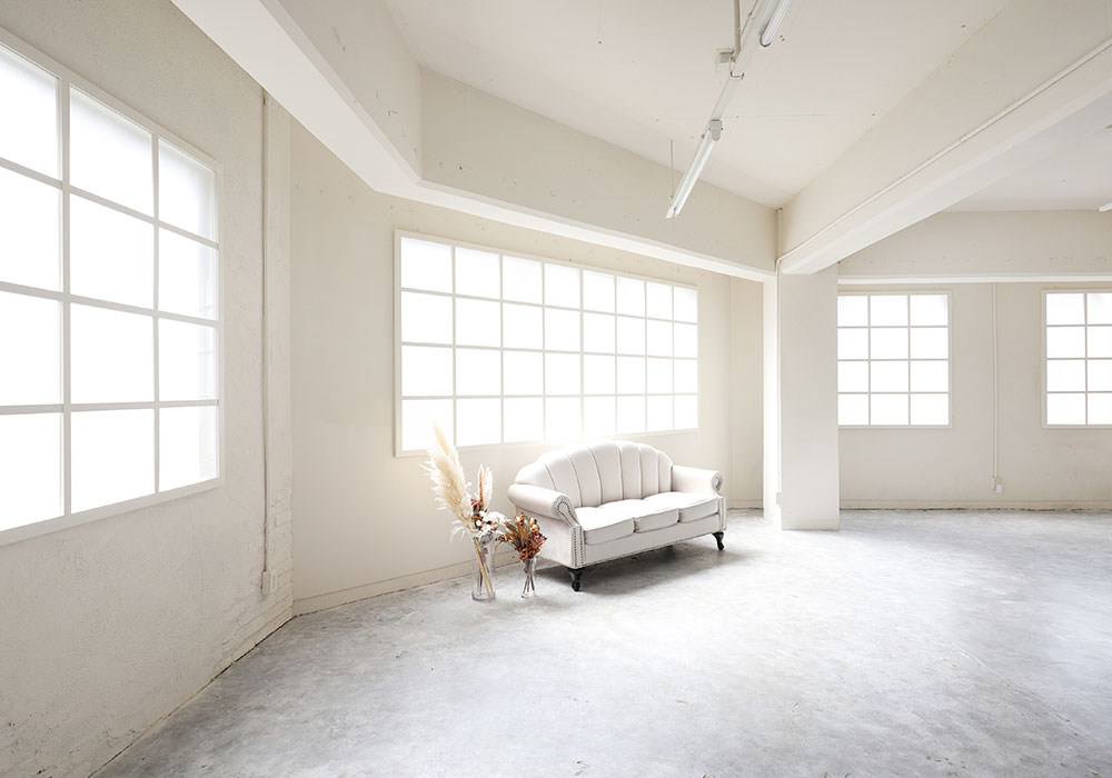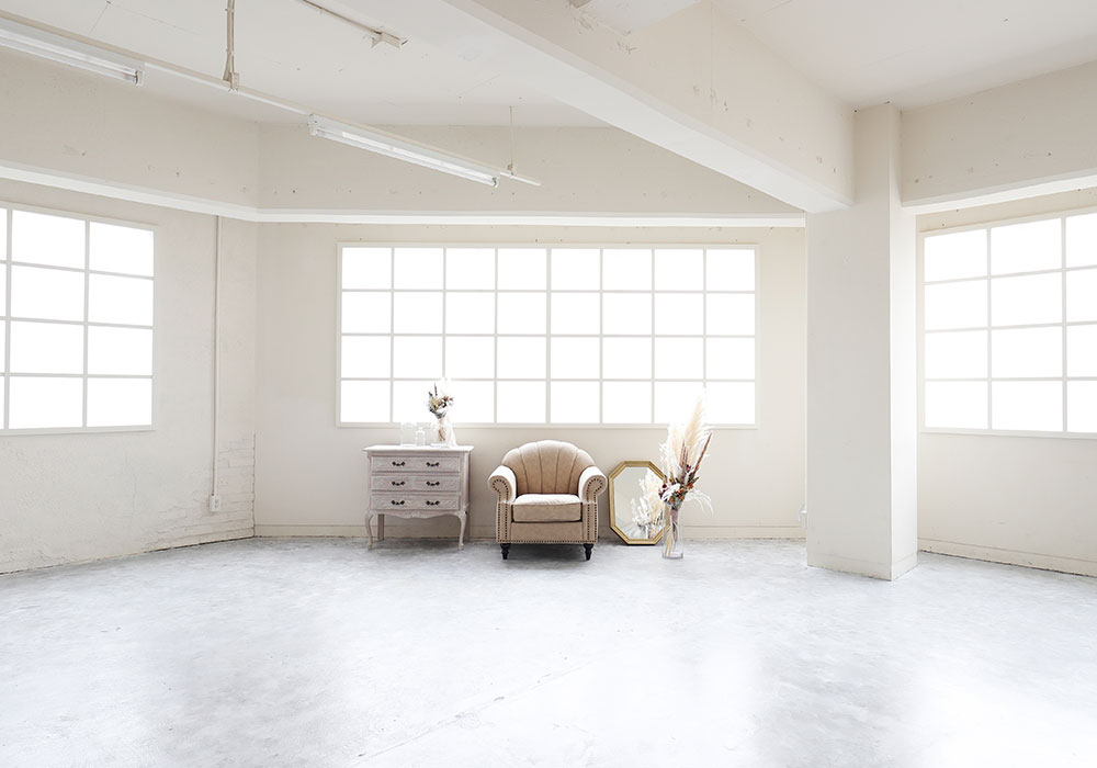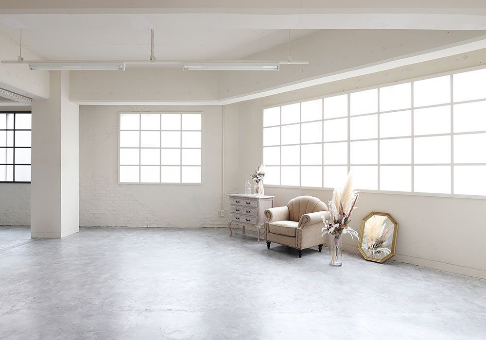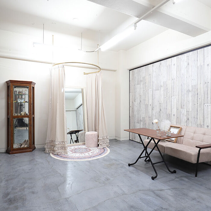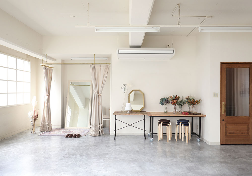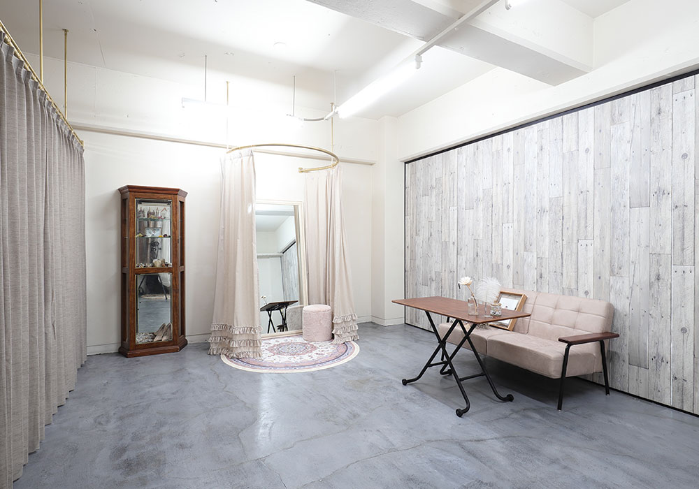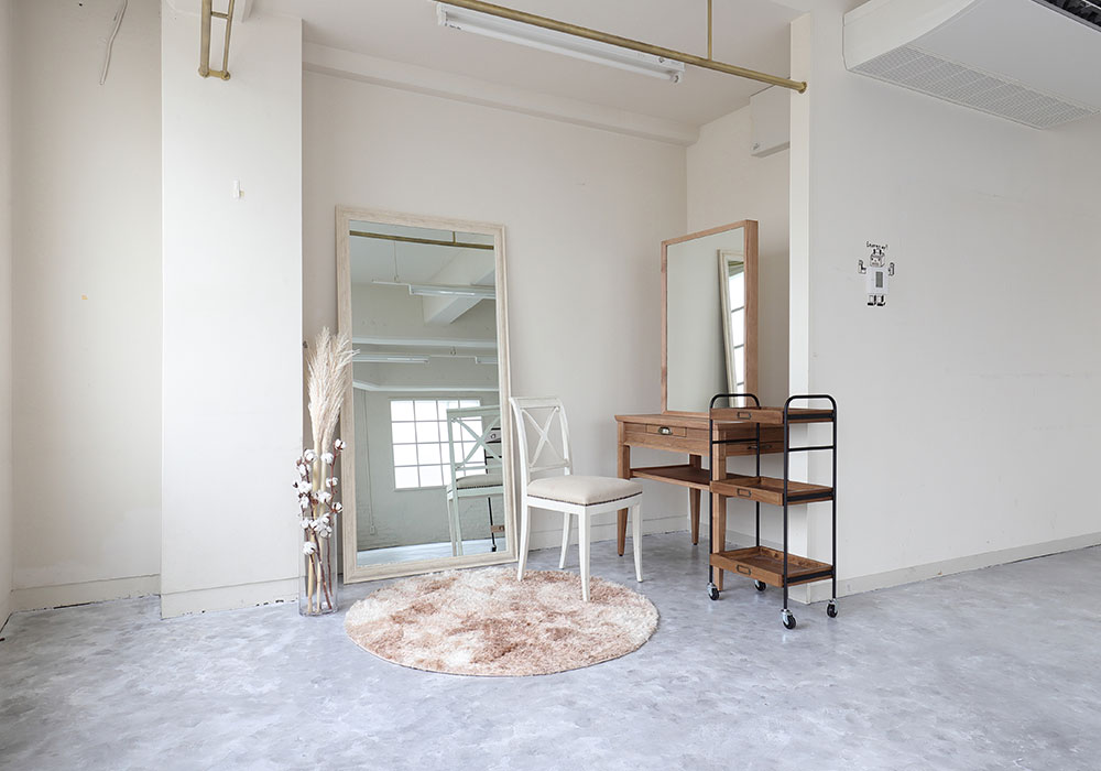 - ※スタジオレンタルはカジュアルスペースとホワイトスペースのみのレンタルとなります(ホワイトスペース内の試着・メイクスペースはお使いいただけます)
