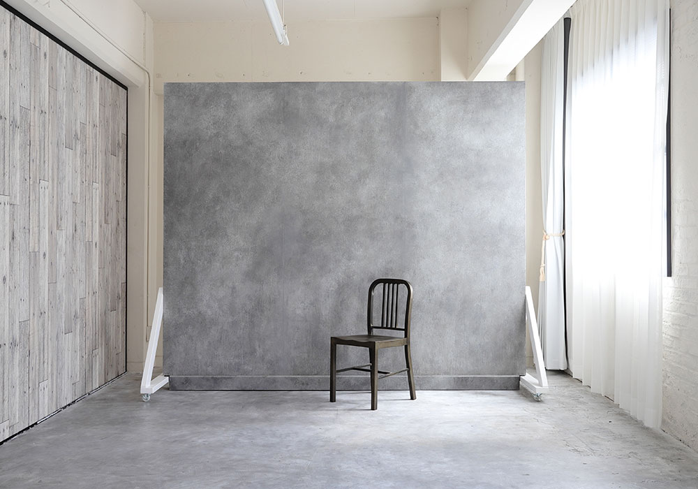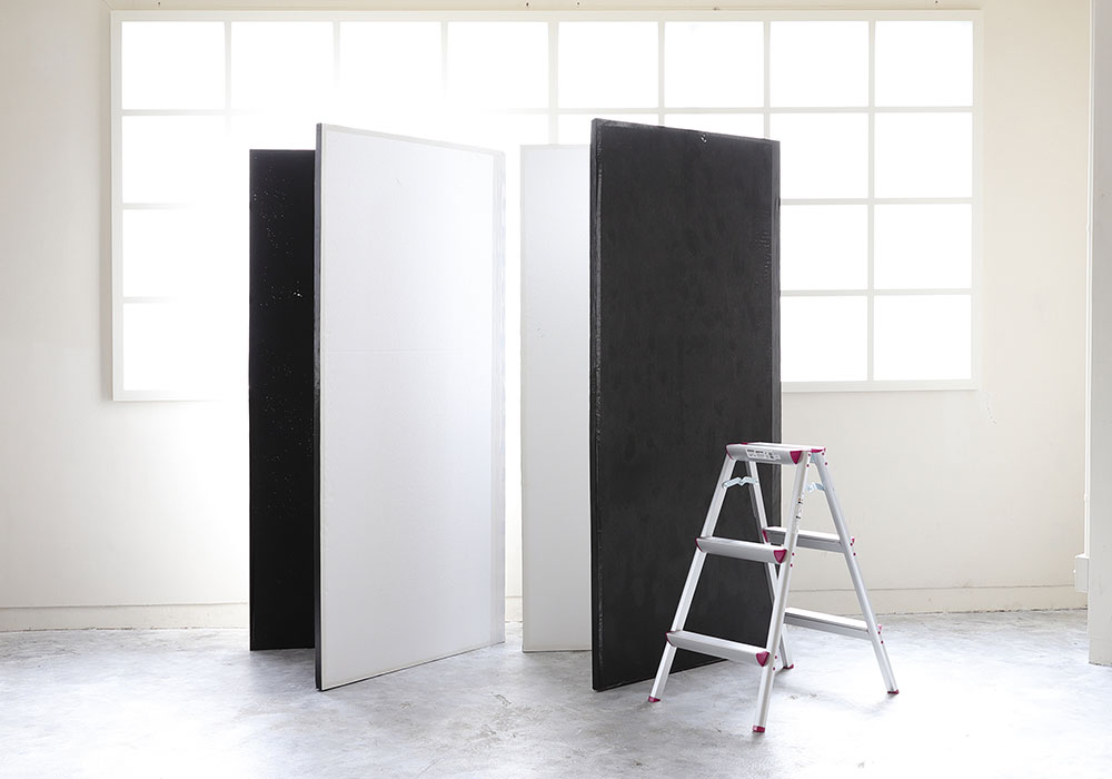 常設機材:蛍光灯ライト2基/白黒カポック/ 脚立/アイロン/アイロン台/ 木の机/